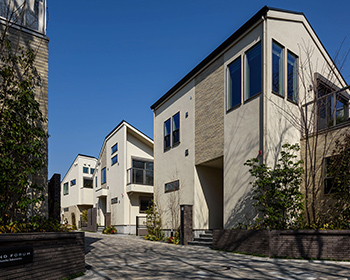 街並みは、一軒の住まいだけでは生まれません。また風景とは家の集合ではありません。私たちは、単体で美しい家をつくるだけでなく、デザインのルールを設け、彩りやスカイラインにリズムや統一感を持つ街並みをつくります。さらにシンボルツリーや街路樹といった植栽で周囲とつながり、環境との調和も追求すると同時に、景観に新たな潤いを創造します。