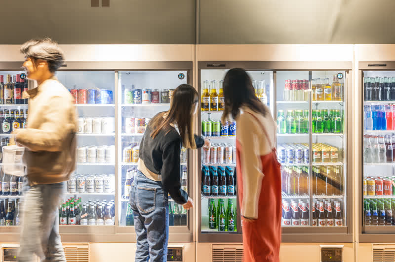 お酒やBBQの追加食材は元保健室のマーケットで。100種類以上のアルコールとソフトドリンクを揃えています。クラフトビールはビールサーバーでお楽しみいただけます。他にも、様々なおつまみや、ホットサンドなども。