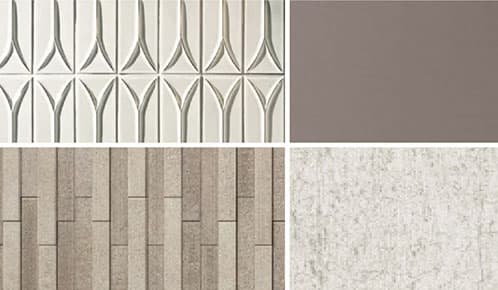 左上:アクセントタイル/左下:エコカラット/右上・右下:アクセントクロス