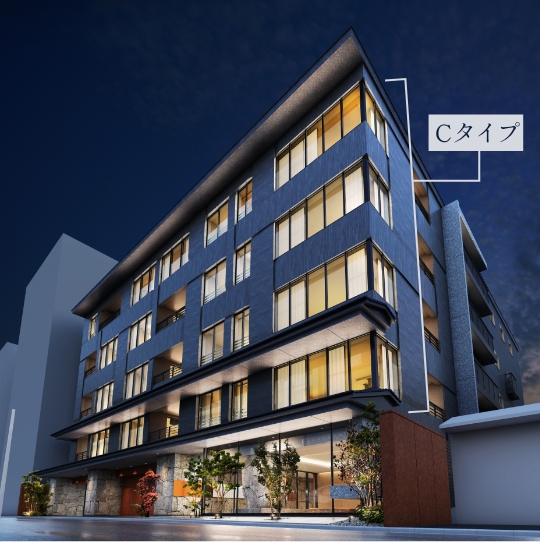 建物西側が道幅約6.5mの御幸町通に面したイニシア京都御所南でも、