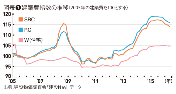 ただ、4月に発生した熊本地震による顧客マインドへの影響については、未だ計り知れないが、今後、建築コストが強含みになる可能性は否定出来ないと思われる(図表❶)。