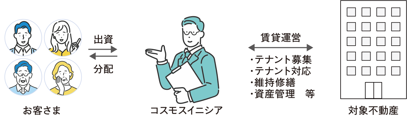 個人での取得が難しい一棟収益不動産を1口500万円に分割し、2口1000万円から取得できるようにいたしました。