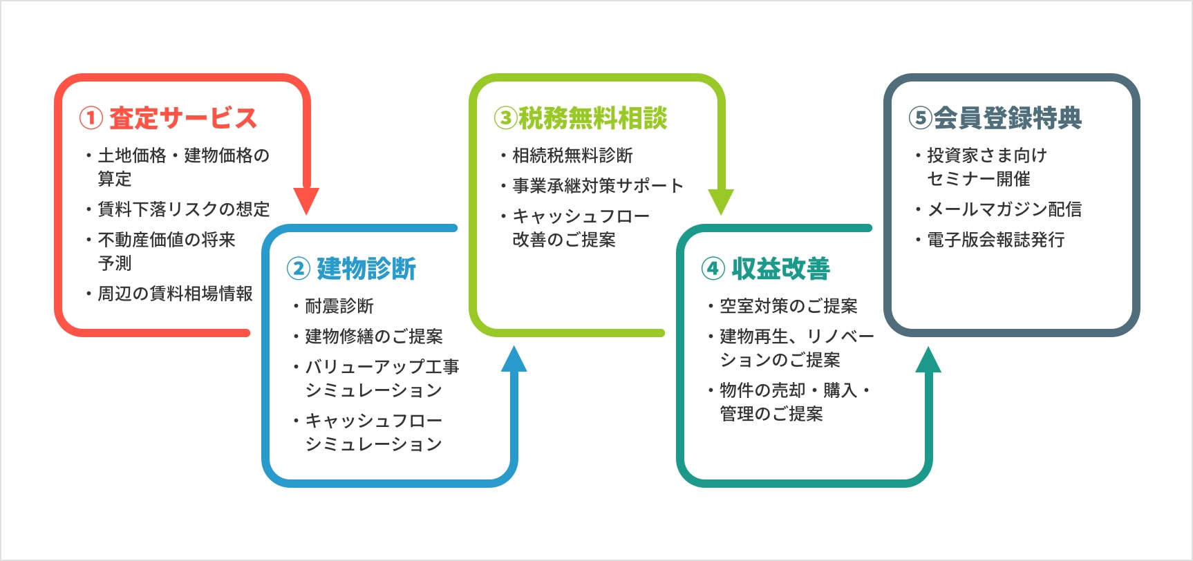 その他、不動産総合デベロッパーならではのノウハウを活用し、ご所有不動産の空室対策やバリューアップ、資産の組換えまで幅広くご提案いたします。お客さまの大切な資産の有効活用のため、サポートいたします。