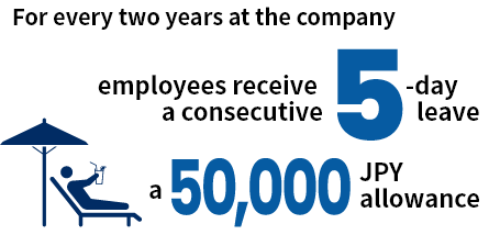 We have introduced refresh leave system for the purpose of self-development and mental and physical refreshment after a certain length of employment.