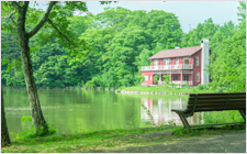 豊かな緑に包まれた、静かな水辺のスポット。西側の遊歩道を散歩したり、釣りを楽しむこともできます。