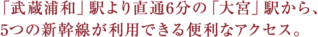 「武蔵浦和」駅より直通6分の「大宮」駅から、5つの新幹線が利用できる便利なアクセス。