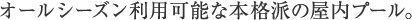 屋内25m、屋外50mプールはともに日本水泳連盟公認、8コースの本格派。屋外にはスライダー、流水プールもあり、家族で楽しめます。冬期にはスケートリンクも開場。