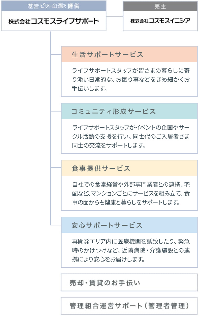 ご意見ご要望をうかがいながら、コスモスライフサポートが幅広くサポートしています。