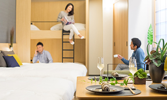 家族や仲間とみんなで一緒に過ごせるアパートメントホテル ミマルの運営を行っています。キッチンを備えた広い客室で、旅先でもまるで自分の家にいるかのようにくつろいで過ごせます。世界各地から集まった日本が大好きなスタッフたちが、みなさんの旅を一緒につくっていきます。