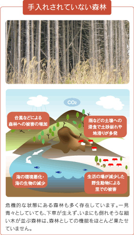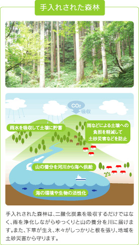 国産材の利用は、森林を保全し、私たちの暮らしの安全安心につながります。