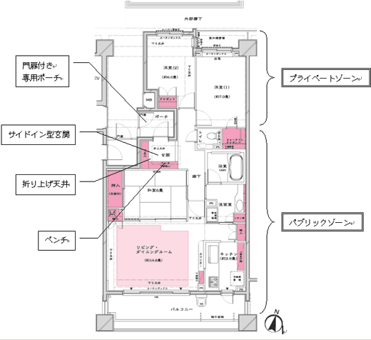 | サイドイン型玄関を採用した、P/P(パブリック/プライベート)分離設計 『コスモヒルズ船橋夏見』3月中旬より販売開始。 |