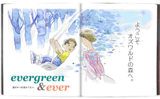 | プロジェクトテーマ「evergreen & ever ~森はいつも変わらない」から生まれたストーリーを絵本に。 絵本「オズワルドの森」共有部に再現した『コスモ・ザ・パークス船橋』 |