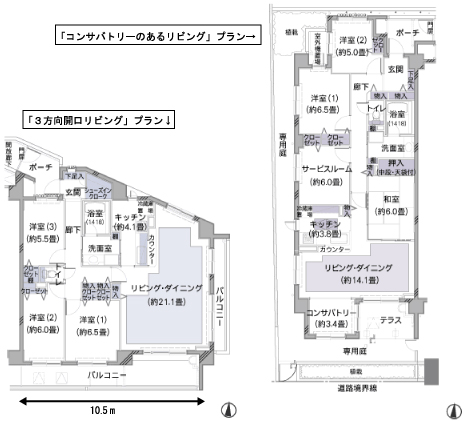 | 「コンサバトリー(温室)のあるリビング」・「3方向開口リビング」など、 全13タイプの特徴的な住戸プランを提案。 『コスモ浦和元町エクシード』販売開始 |