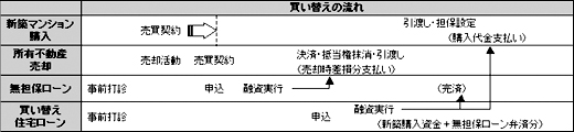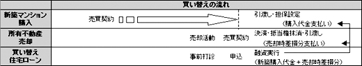 具体的には、リクルートコスモスが分譲する新築マンションを「買い替え」で購入するお客様が所有不動産を売却する際、売却価格が残債務を下回った場合、この差額を新築マンション引渡しまでの間、関西銀行が無担保ローン(上限融資額1,500万円・変動金利3.375%(9月26日現在))として融資するものです。 このような場合、従来のローン商品では、買い替える新築マンションの住宅ローンに所有不動産の残債務を加えた融資を受けるのみのスキームであり、新築マンションの引渡し(売買契約後 概ね6ケ月から1年程度先)と所有不動産の売却を同時に行わなければなりませんでした。 しかし、中古物件の取引では、入居が6ケ月から1年程度先の物件の売却は困難(1〜2ヶ月程度が一般的。)であるため、所有不動産売却希望のお客様は、新築マンション契約後 すぐに売却活動を行うことができず、所有不動産引渡しまでの期間における価格下落を見込んで売却する必要がありました。そのため不利な資金計画や、資金計画自体がなかなか確定しないことなどの理由で、結果的に買い替えを断念せざるを得ないといった場合が多くありました。 一方、今回の新型ローンでは、所有不動産の売却後の残債務のみを対象とした無担保融資を受けることができ、新築マンションの引渡し時に、無担保融資と新築購入に係る住宅ローンを合わせた全額を、新築マンションを担保とした融資(「マイホームアシストローン」:上限融資額5,000万円・変動金利2.375%(9月26日現在))へ切り替えることを可能とした、今までにない新しいタイプのローン商品であります。 従って、当融資を利用するお客様は、新築マンションの引渡し時期に関係なく 所有不動産の売却を行うことが可能となり、価格下落の影響も少なく、資金計画の早期確定ができるため、「買い替え」による住宅購入の選択の幅が広がります。 また、中古住宅の流通を促すことにもつながるため、不動産の流動化促進の観点でも意義深いことと考えております。 ※当ローン利用に伴って新築マンション引渡しまでに仮住まいの必要がありますが、リクルートコスモスでは、賃貸業者の紹介、引越し・トランクルームの割引貸し出しなど、関係会社と協力し、積極的にサポートしていく予定です。 なお、万一、死亡・重度障害・ガンであるとの確定診断により新築マンション引渡しまでに契約キャンセルに至った場合、既に実行済みの無担保ローンは、関西銀行による「団体信用生命保険」にて完済されることになります。また、あいおい損害保険は新築マンションの火災保険とともに、入院などに備えて返済をサポートする「所得補償保険」を販売する予定です。住宅ローンは、長期に渡り返済を続けていくものであるため、当ローンは様々な不測の事態に備えて安心していただける仕組みとなっております。 <従前ローンとの比較フロー図> *従前買い替えローンの場合 ![]() *今回の新型買い替えローンの場合