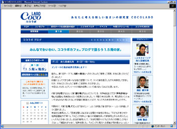 | 『COCOLABO 2007』のウェブサイト上では、当社の一級建築士事務所所属の社員代表と、東京大学・難波研究室のメンバーで構成された8名のCOCOLABO研究員のブログを公開しています。ブログ内で、この8名のCOCOLABO研究員と一般の生活者の『1.5階の家』について活発な意見交換が繰り広げられていきます。研究員の中には、発展著しい中国やベトナム出身の研究員も参加しており、国際色も豊かで、未来のアジアの建築界を担う若きメンバー達の研究発表を見るだけでなく、誰でも参加して、ディスカッションが可能な貴重な機会であると考えています。 ![]() |