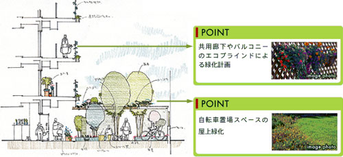当マンションは、都市利便性の高い立地にありながら、環境共生をテーマとした住まいづくりで豊富な実績を持つ(株)チームネット(本社:世田谷区、代表取締役:甲斐徹郎)が提唱する「住環境統合理論」を取り入れることでエコライフを実現できるマンションです。 |