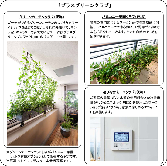 「プラスグリーンプロジェクト」(『イニシア練馬ブライトステージ』・『イニシア練馬パークサイドステージ』)概要 ●「プラスグリーンクラブ」:自然のある暮らしをお届けする、エコロジーなコミュニティ活動 「プラスグリーンプロジェクト」では、「プラスグリーンクラブ」という農家や環境の専門家によるワークショップなどをプログラムしたクラブ活動を用意し、入居者の皆様に自然に触れる楽しさを感じていただきながら、より暮らしやすいコミュニティの形成を入居後1年間サポートしてまいります。