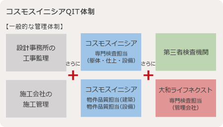 QITは私たちコスモスイニシアが建物の品質管理強化のために独自に行っているもので、社内外の検査官により、建物の品質管理を体系立てて行うことを目的としています。