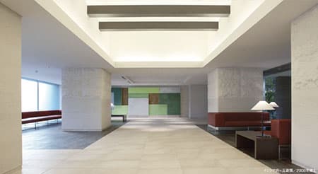 外周部の柱、梁はタイル打ち込みとし、従来工法の鉄筋組立作業、壁枠組立作業、コンクリート打設作業を、品質管理の行き届いた工場で生産。工場生産した高品質な部材を、現場に搬入し組立てるPC工法システムを採用しました。(中柱・中梁を除く)
