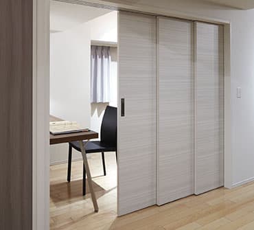 敢えて引き戸を採用したのは空間の使い方をより広げるため。引き戸の場合、開口部を大きくとれることで開け放すと一続きの大空間に、閉めれば個室になります。