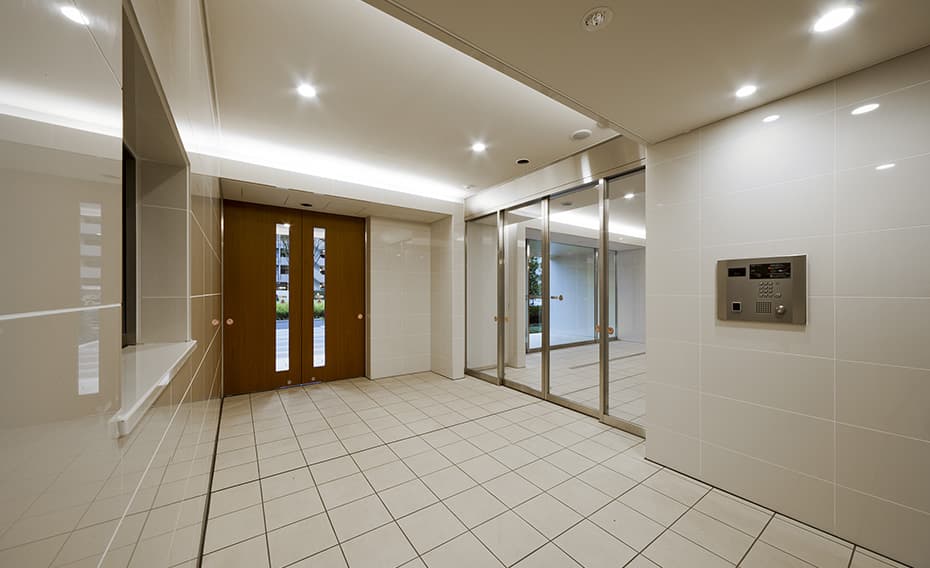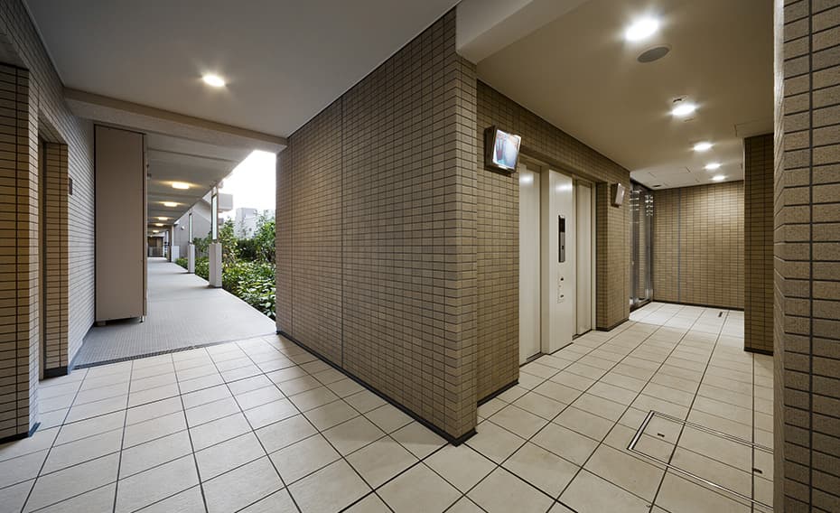 エントランスやエレベータ内などに防犯カメラを装備しました。