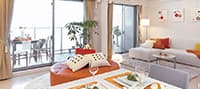 住戸内の床スラブはコンクリートの厚さ約200mmを確保。居室部分はLL-40等級相当の遮音性能を有するフローリング材を採用しています。(最下階住戸及び住戸の居室以外はLL-50等級相当) ※遮音等級についてはメーカー公表のものであり、実際の住戸における遮音性能を保証するものではありません。