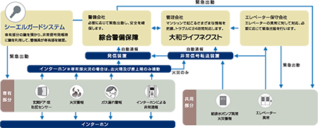 管理会社と綜合警備保障(ALSOK)が新たにご提供するホームセキュリティサービス。各住戸の鍵をあらかじめお預かりし、ご不在の時に万一の事態が発生しても、警備員がお預かりしていた鍵を利用して当該住戸に立ち入り、速やかに対処します。
