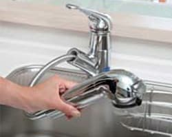 浄水器を内蔵したシャワー付き水栓を採用。ホースが自在に伸びるので、シンクの掃除も楽に行えます。