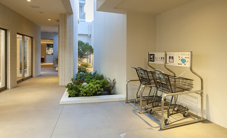 エントランスのオートロック操作盤にカメラを設置。来訪者の声と画像を確認してから開錠することができます。さらに、各住戸前からはインターホンで音声確認が可能。二重のセキュリティ仕様が住まいの安全性を高めます。