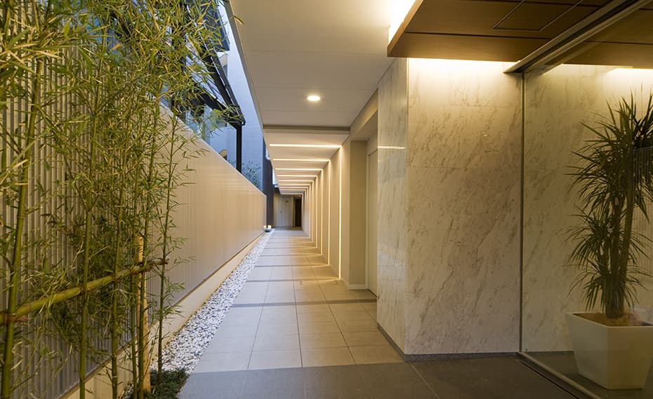 建築基準法で定めている耐震力に対し、1.25倍となる耐震等級「2」で設計した建物。この強度を確保しているのは、主に公共機関や学校・病院といった地震災害時の避難場所となる建物。『イニシアイオ目黒』はこの高い基準で居住者を地震から守ります。