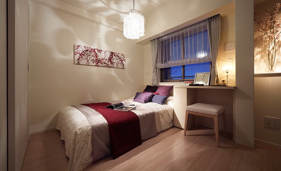 床スラブ厚は約200mm。居室にはLL・40等級相当の置床を採用し、二重床構造としています。(最下階はLL・50)また、天井は、コンクリートスラブから天井を吊り下げる二重天井構造を採用。設備配管スペースとしても機能し、将来のメンテナンスやリフォームも容易にします。