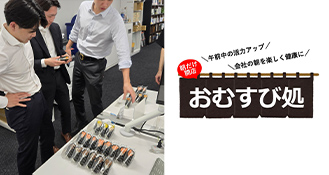 「会社の朝をもっと楽しく、そして健康に」をテーマに掲げ、朝食の欠食率の改善と従業員のモチベーションアップを目的に、職場内にておにぎりやパン等の販売を行っています。(おにぎりは期間限定)
