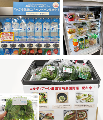 「自らの健康に、水から健康に。」をテーマに、健康のために水を飲む習慣を従業員へ促進するため、本社オフィス内の自動販売機の水を通常の半額で販売しています。保健師、健康保険組合、総務課が協働し、健康的な職場づくりに積極的に取り組んでいます。