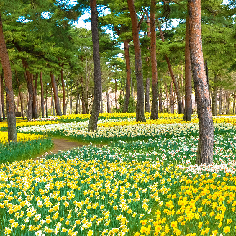 白と黄色の華やかなスイセン。3月下旬から春の訪れを知らせてくれます。まだまだ肌寒い日も、心温まる色でぬくもりを感じて。