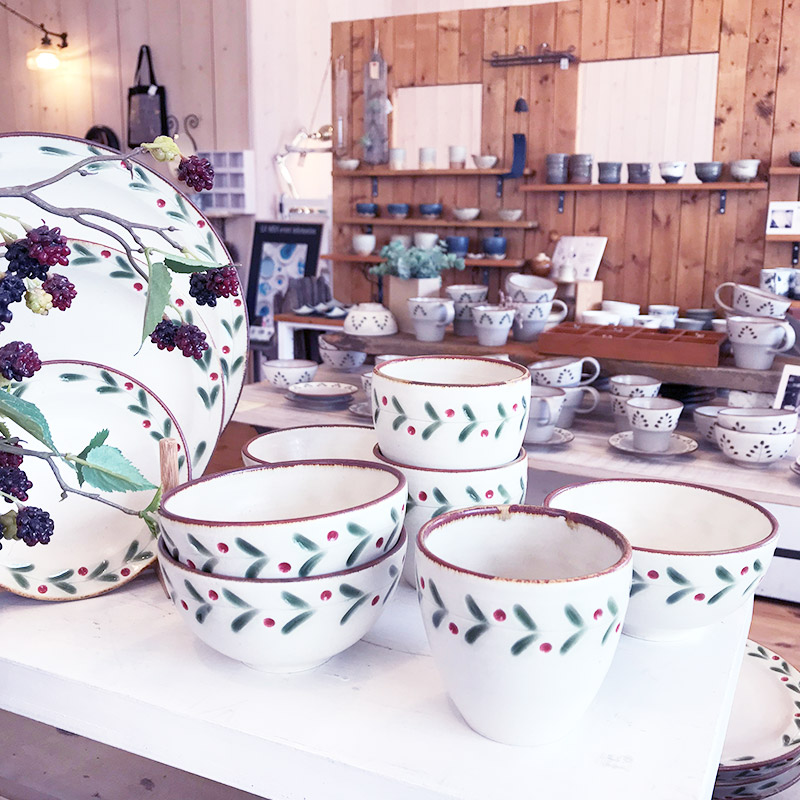 ひとつひとつ手作りの器たち。定期的に展示を行っていたり、販売もしているので、お気に入りの1点を見つけて。