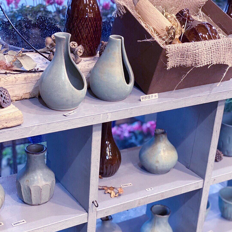 お花だけでなく、笠間焼の花瓶も帰るので、合うお花をセレクトしてもらうのも◎。ちなみに、笠間焼の作者は店主さんの奥さんです!