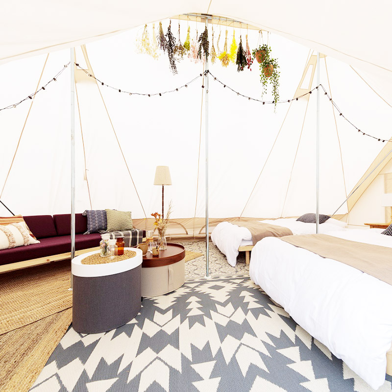冷暖房完備のGRACE TENTはどの季節も快適。