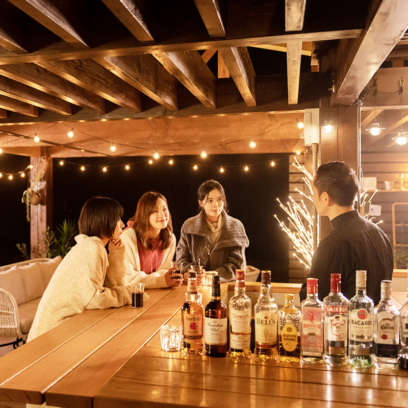 アウトドアバーでは地元のビールにカクテルなど地酒をご用意。