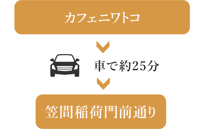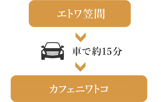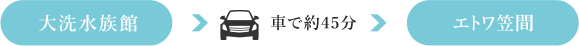 ※掲載の車の所要時間は日中平常時に一般的な速度で走行した平均値を算出したものです。道路状況により所要時間は異なります。