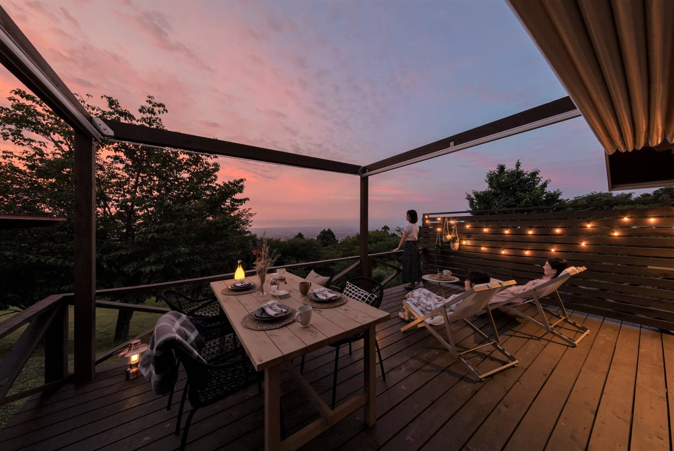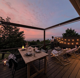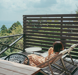 デッキからは、山頂から眺める景色と広がる青い空をお楽しみいただけます。