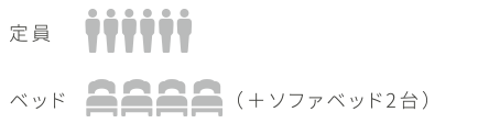 • ・ベッド数: シングルベッド×4、ソファベッド×2