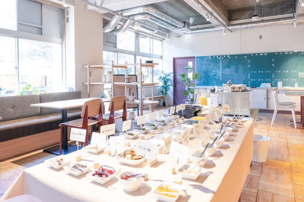 元職員室をリノベーションしたカフェラウンジでは、地元木更津で愛されるコーヒーショップ『 THE COFFEE 』 を併設している他、朝食の提供も行っています。