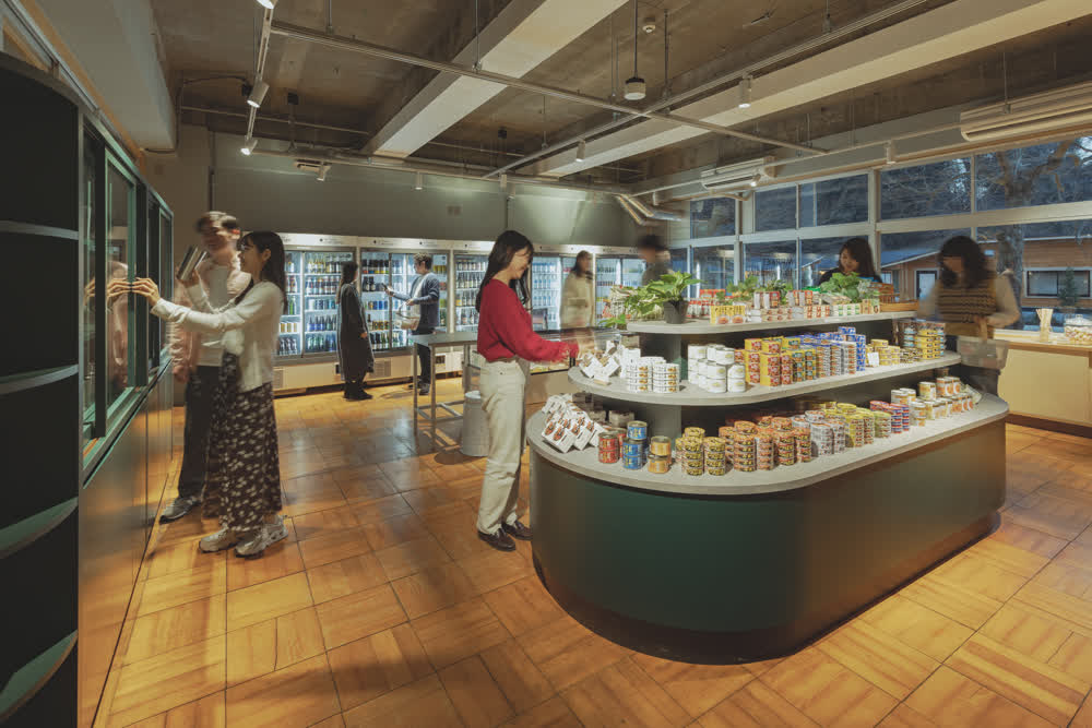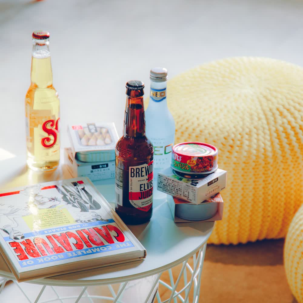 お酒やBBQの追加食材は元保健室のマーケットで。100種類以上のアルコールとソフトドリンクを揃えています。クラフトビールはビールサーバーでお楽しみいただけます。他にも、様々なおつまみや、ホットサンドなども。