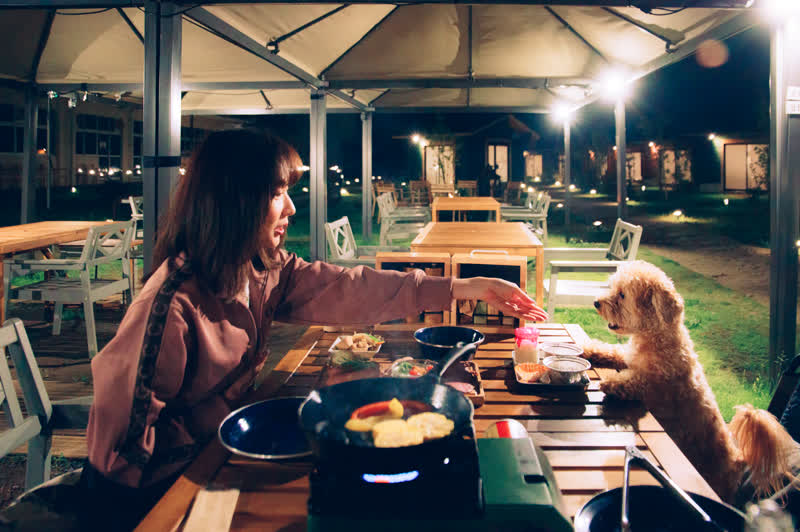 愛犬のお立ち入りはご遠慮いただいておりますが、DOG LOUNGEやBBQ SITEにて愛犬と一緒に朝食をお召し上がりいただけます。