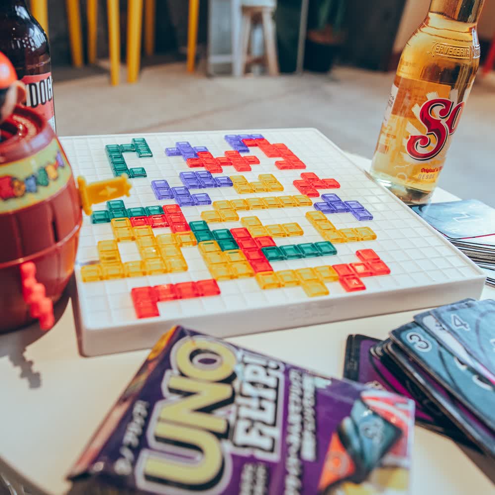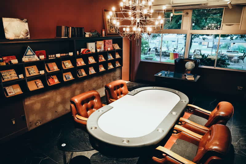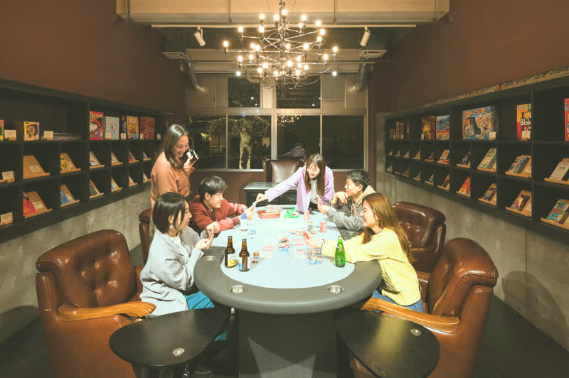 元校長室のプレイルームではラグジュアリーな空間で、ボードゲームやカードゲームをご用意しております。愛犬のお立ち入りはご遠慮いただいておりますが、ゲームは貸出自由ですので、DOG LOUNGEにてお楽しみいただけます。