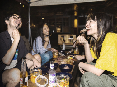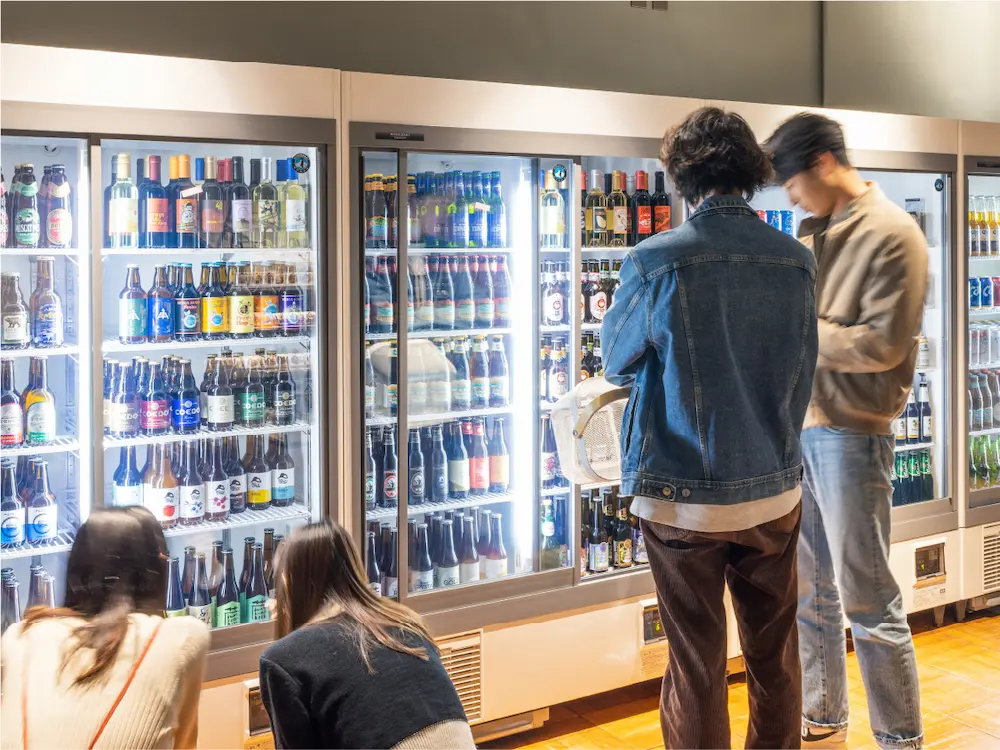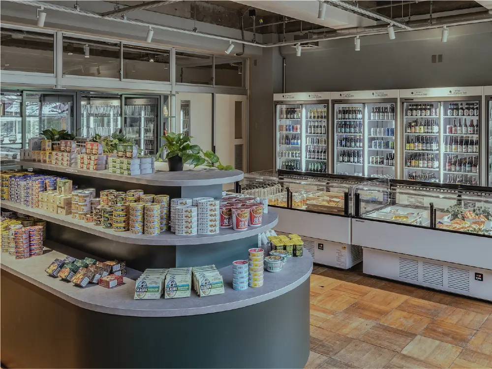お酒やBBQの追加食材は、マーケットスペースにてご用意をしております。日本各地のご当地ビールをはじめ、常時100種類以上のアルコールやソフトドリンクを楽しんでいただくことができます。また、追加食材ではソーセージやベーコン、チーズといったものから普段はあまり目にすることのない数十種類の様々な缶詰からお好きなものをご自身でチョイスしていただき自分たちだけのBBQを楽しんでいただくことができます。飲み物・追加食材は料金にインクルードされ食べ飲み放題です。