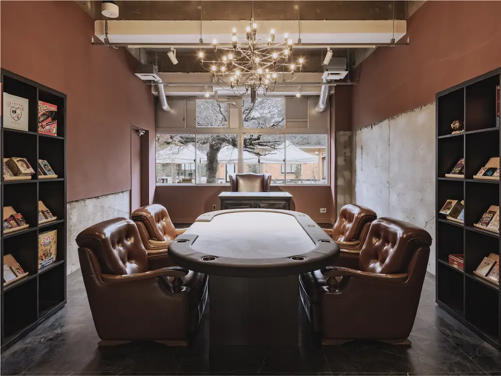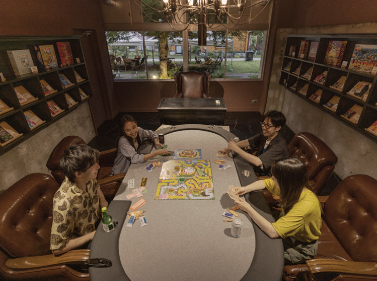 校舎の中央には大人のプレイルームをご用意しました。校長室だった面影を残す、ラグジュアリーは空間で普段気にはなっていたけどまだ遊んだことのないボードゲームや、おなじみのカードゲームなどを、少しだけリッチな気分でお楽しみいただけます。