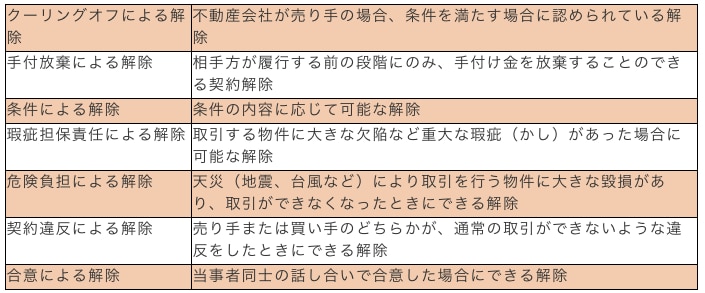 | 契約違反の場合 | 売り手または買い手のどちらかが、通常の取引ができないような違反をした際に解除できる方法 |