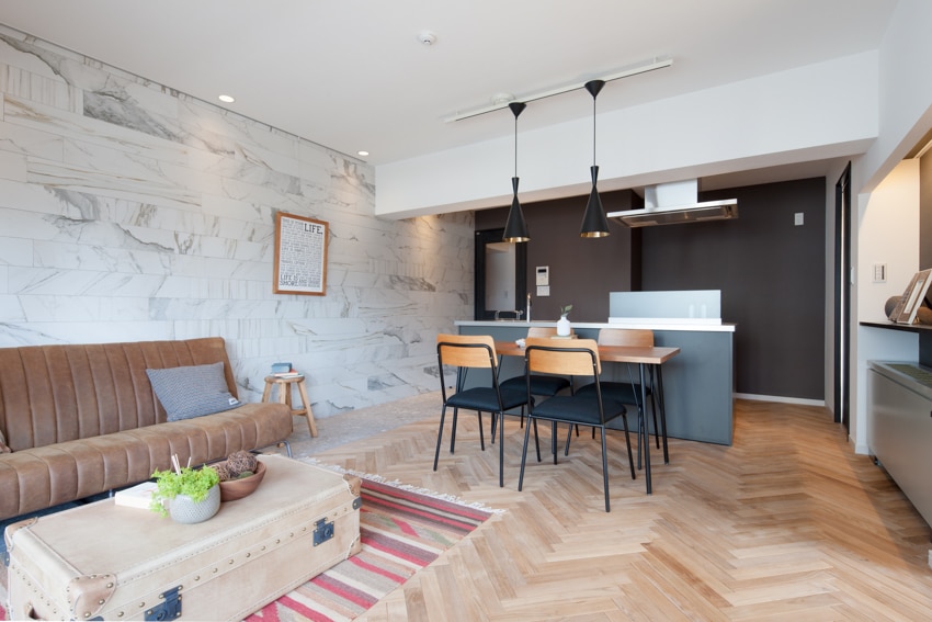 これまでの間取りの常識を覆す、リビングから直接洗面所に入れるレイアウトも、おしゃれなマンションに見られる新しい特徴です。この大胆な動線計画は、単に利便性を高めるだけでなく、住まい全体のデザイン性を向上させ、より豊かな暮らしを演出します。