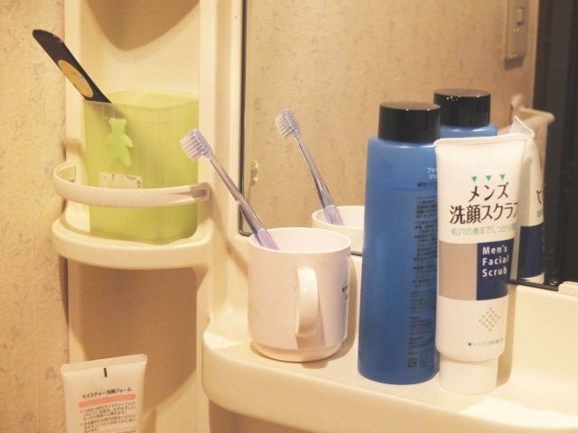 | 自宅 | コップ、石けん、タオル、ティッシュ、歯ブラシ、化粧水、洗剤、掃除用具、体重計、予備のシャンプー、洗濯物など |